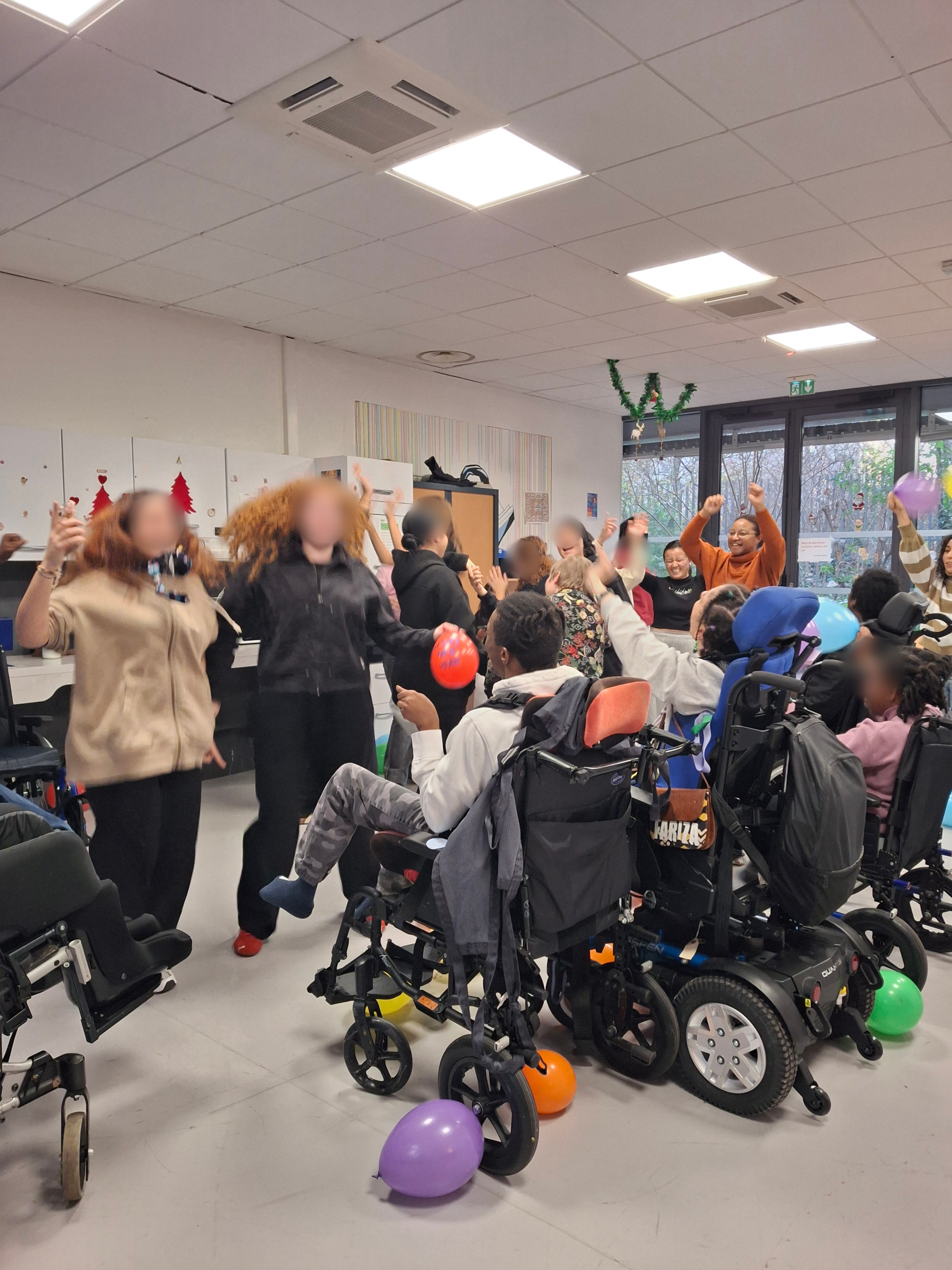 Au Foyer d’Accueil Médicalisé des Batignolles, les élèves aides-soignantes ont récemment partagé un moment auprès des résidents en situation de handicap. Au début, une certaine réserve se faisait sentir chez les élèves : la rencontre avec les résidents, la peur de ne pas trouver les bons gestes ou les bons mots. Peu à peu, les élèves ont pris confiance, se sont rapprochés des résidents et ont su instaurer un climat chaleureux, propice à la création et au partage.