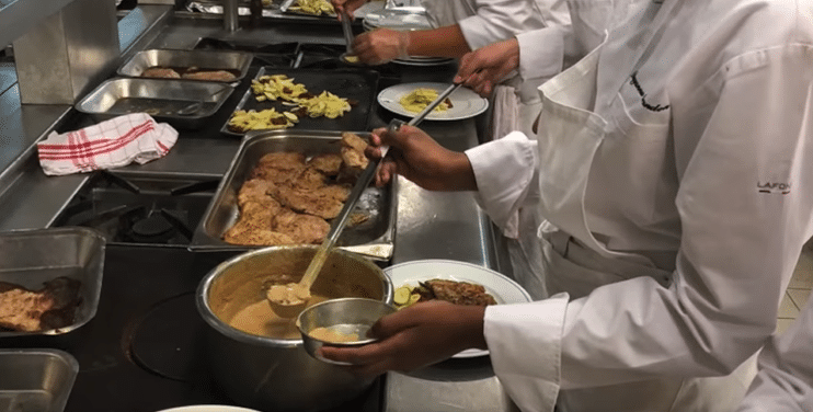 Photo : dans les cuisines du restaurant d’application René Auffray de Clichy. Crédit : page Facebook du lycée René Auffray.